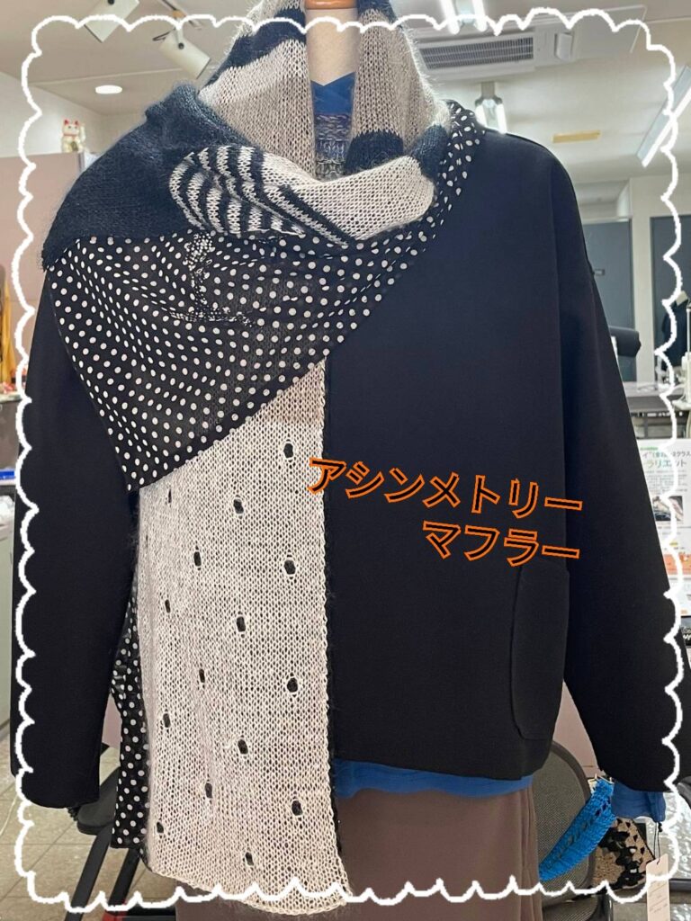 今月のおすすめ作品はシックな配色に遊び心プラスした大人のマフラーです。