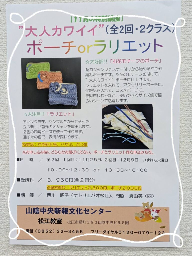 超 ! カンタンファスナー付けから始めるかぎ針編みポーチです。